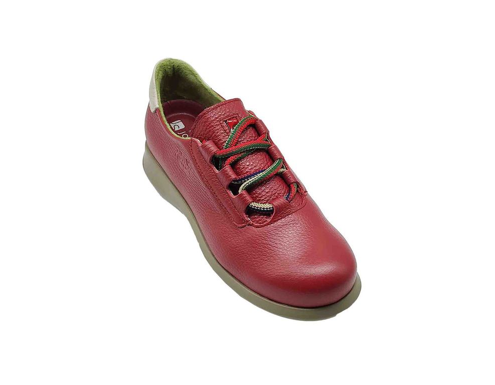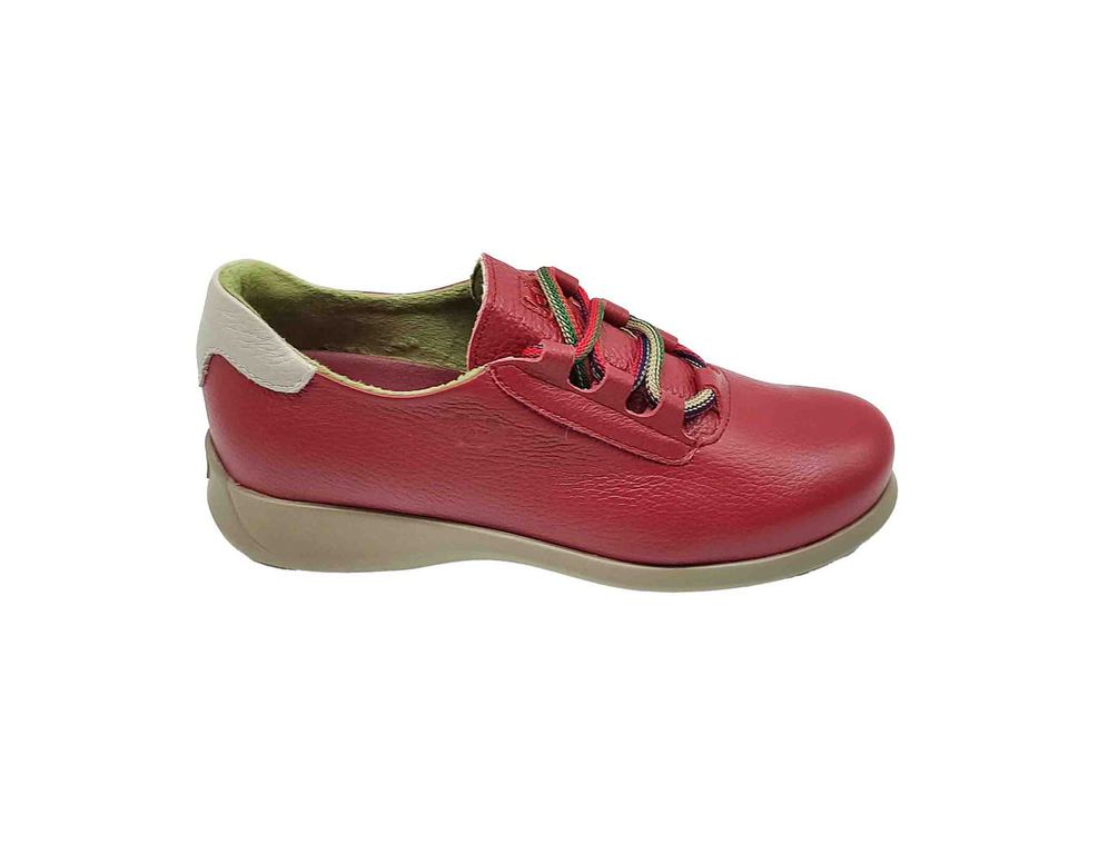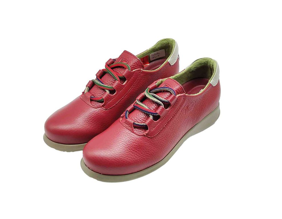 Originales zapatos de cuero rojo de la marca José Saenz, con cordones multicolor que le dan un toque divertido y único. Su diseño cómodo y su estilo vibrante los hacen perfectos para añadir un toque de color a tus outfits diarios. Ideal para quienes buscan confort y personalidad en su calzado.