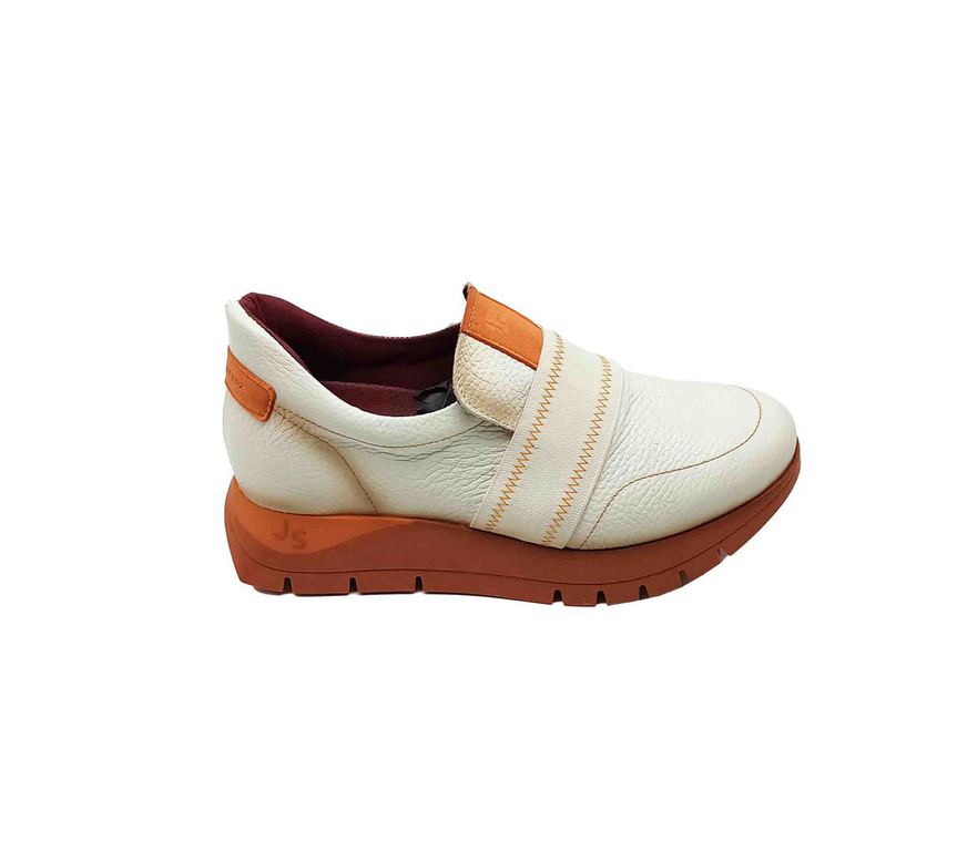 Originales zapatillas de cuero blanco de la marca José Saenz, con una banda elástica en el empeine para un ajuste perfecto y cómodo. Su suela gruesa en contraste de color ofrece un estilo moderno y una pisada suave. Ideales para un look casual y urbano que no sacrifica la comodidad.