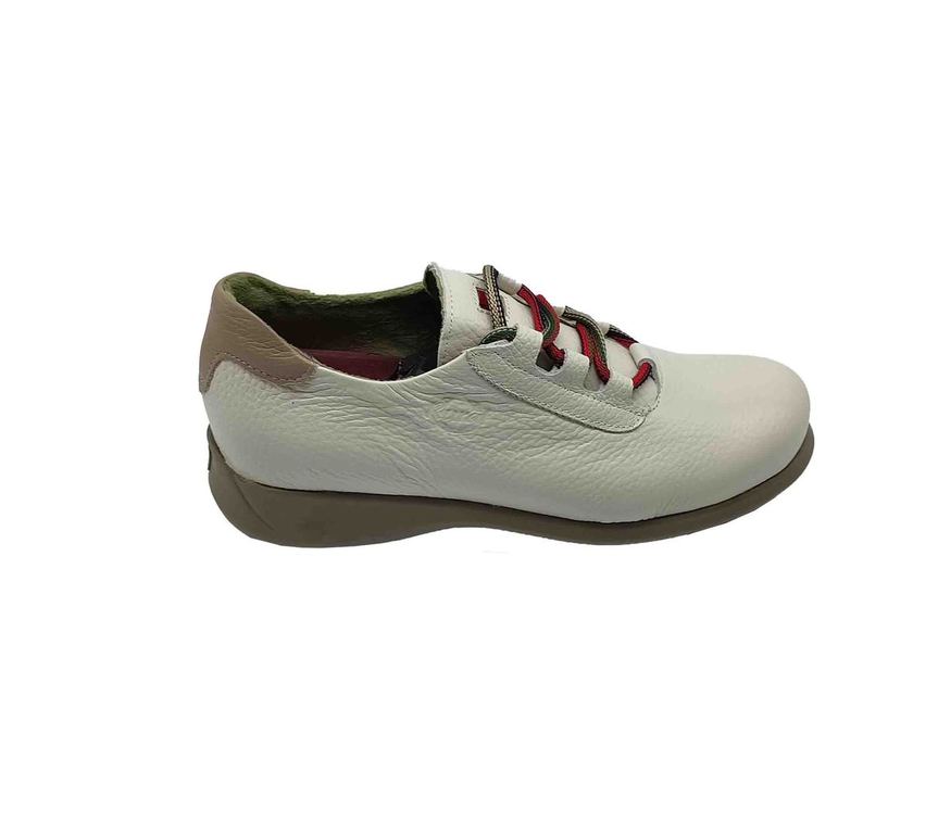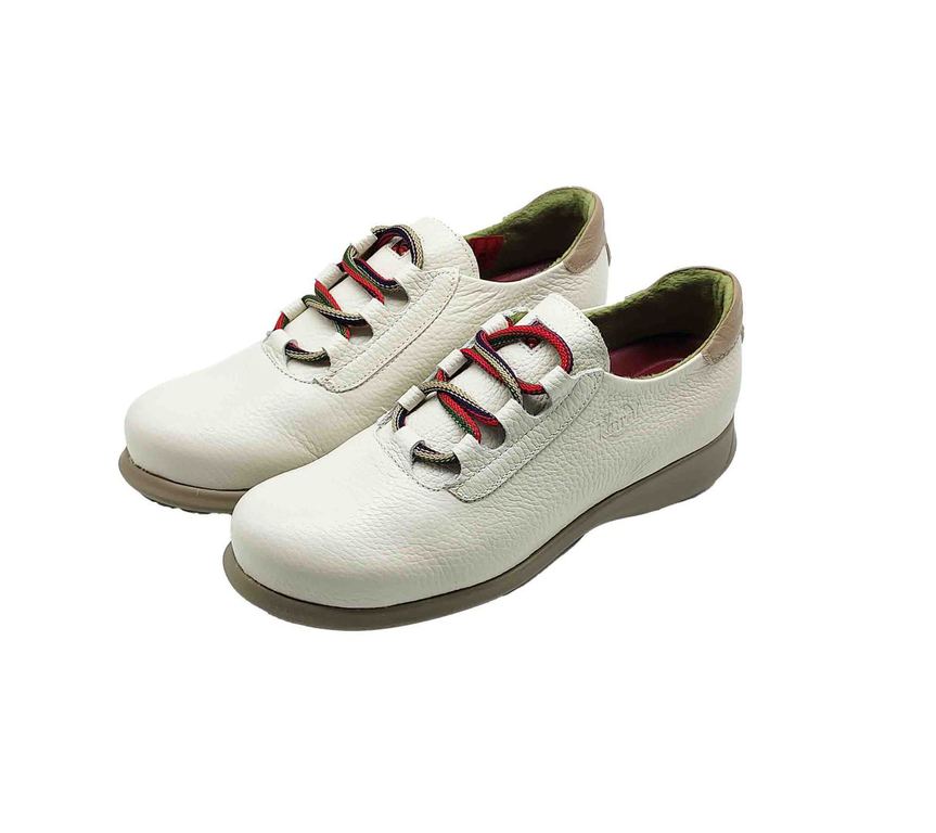 Originales zapatos de cuero beige de la marca José Saenz, con cordones multicolor que le dan un toque divertido y único. Su diseño cómodo y su estilo vibrante los hacen perfectos para añadir un toque de color a tus outfits diarios. Ideal para quienes buscan confort y personalidad en su calzado.