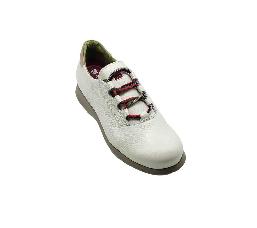 Explora los elegantes sneakers de mujer José Saenz en blanco puro con cordones multicolor.