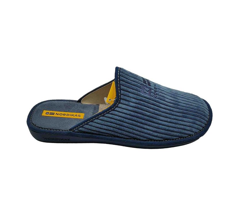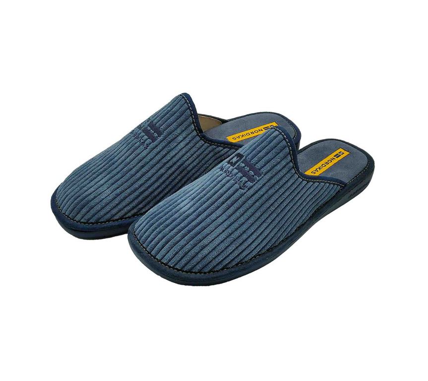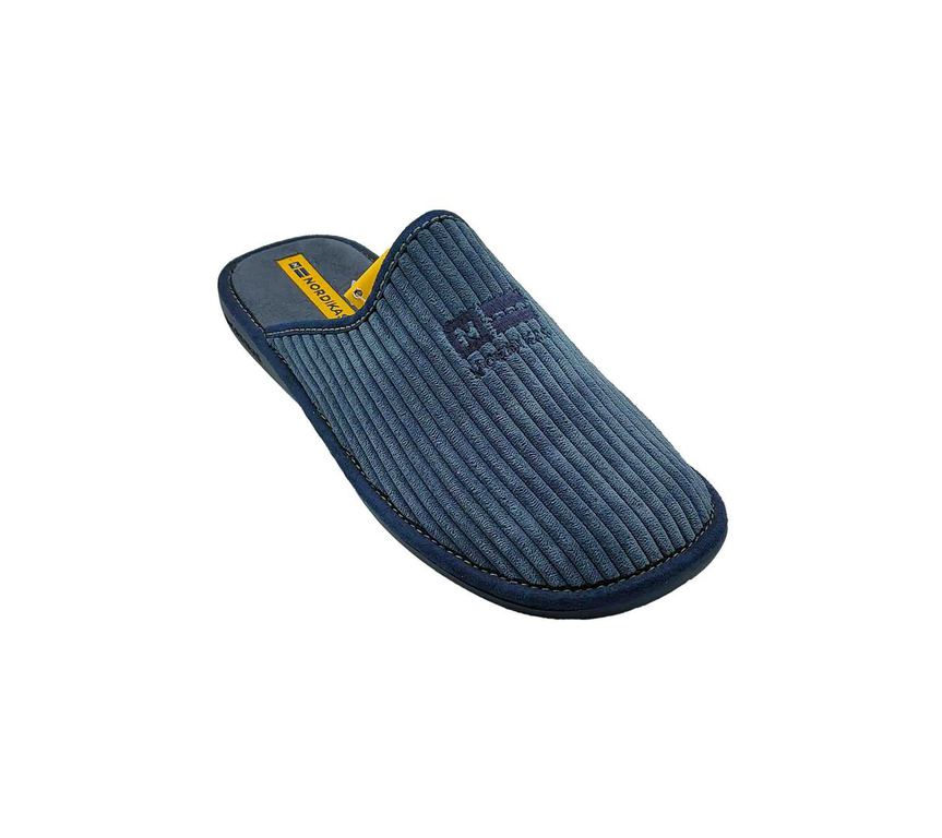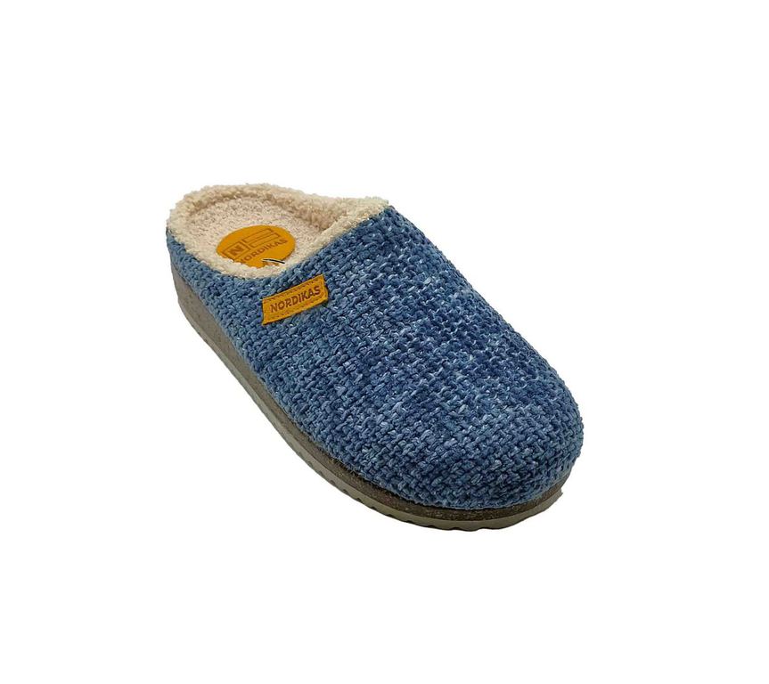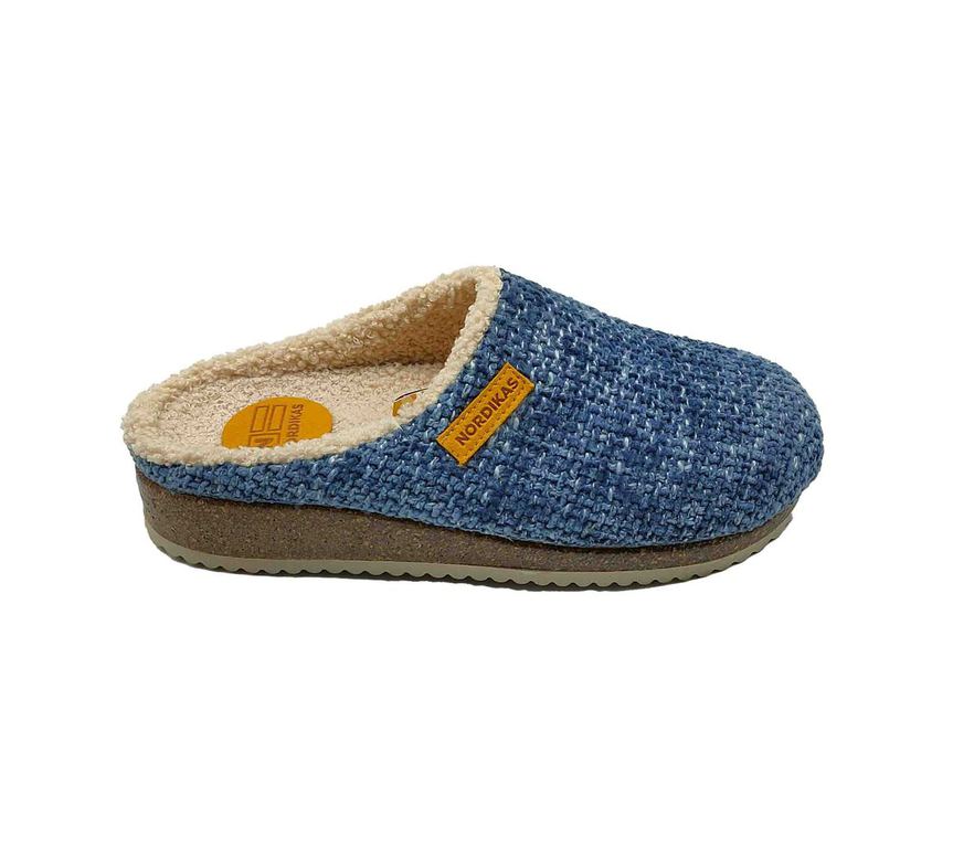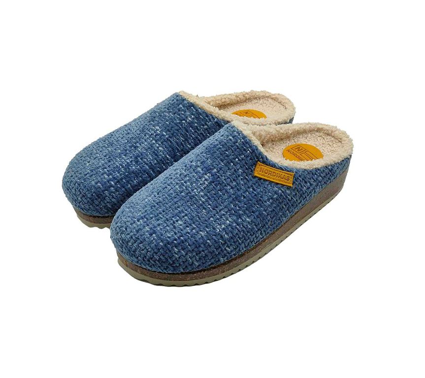 Acogedoras zapatillas de casa NORDIKAS en tejido azul con interior de suave borreguito, pensadas para máximo confort. Forro cálido y diseño envolvente que aportan bienestar en los días fríos. Suela firme y ligera, perfecta para moverse por casa con comodidad. ¡El aliado ideal para relajarse con estilo en invierno! #ZapatillasNordikas #ConfortInvernal #EstiloEnCasa