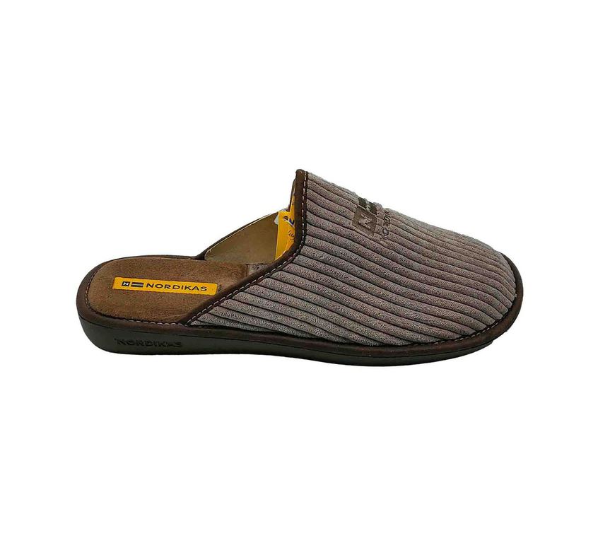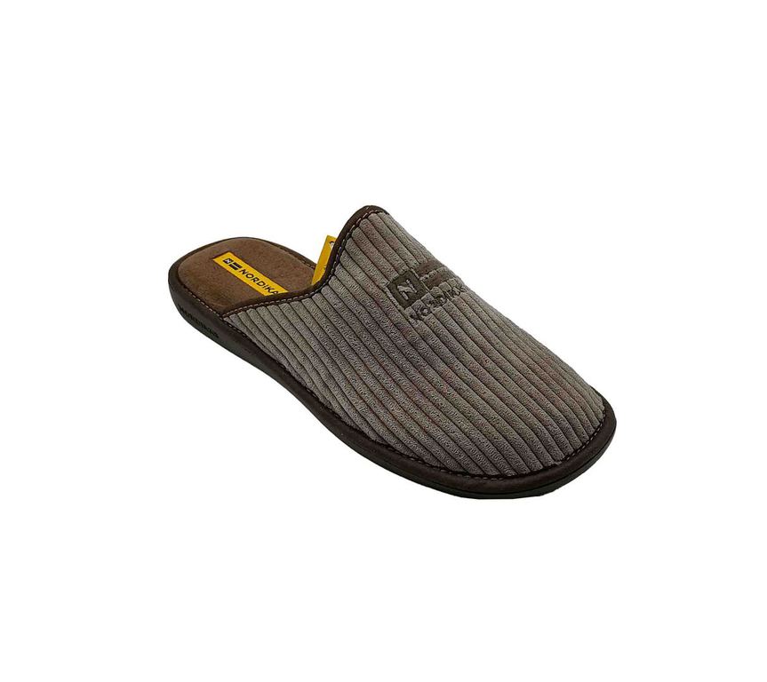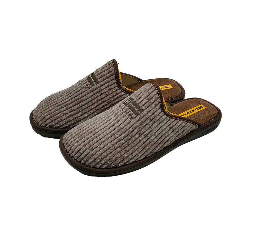 Zapatillas de estar por casa para hombre NORDIKAS en marrón con textura acanalada y diseño destalonado. Interior acolchado y suela firme que garantizan comodidad y estabilidad en cada paso. Estilo clásico y funcional, perfecto para el descanso diario. ¡Tu opción ideal para relajarte con confort y elegancia! #NordikasHombre #ConfortEnCasa #EstiloClásico