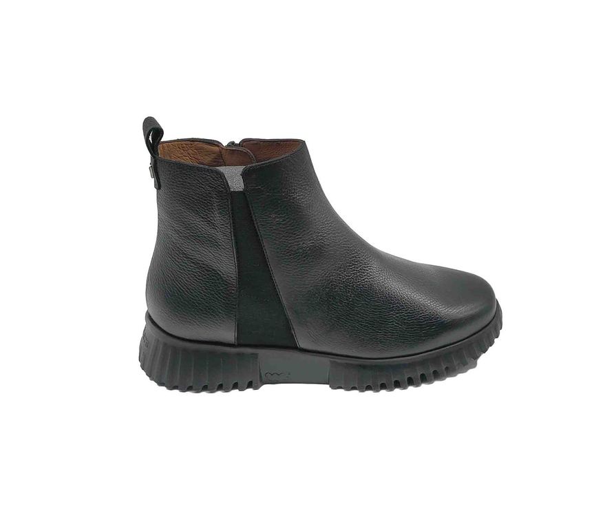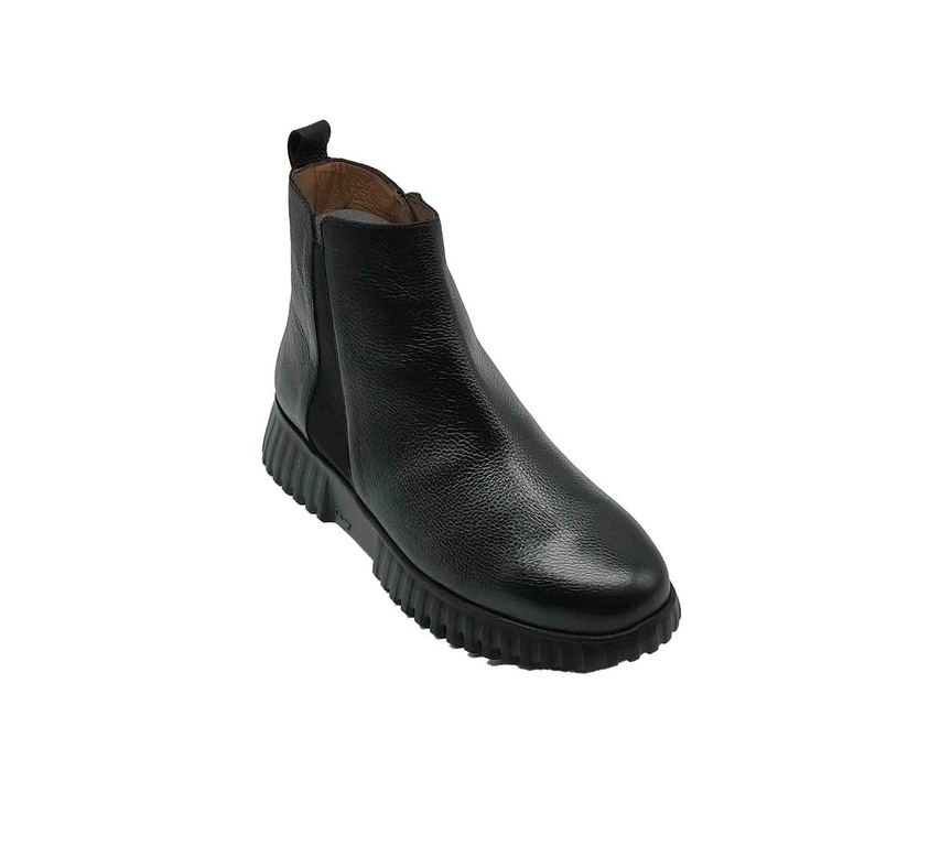 Botines Wonders Chelsea negros en cuero granulado con elásticos laterales. Diseño clásico moderno con suela track robusta y forro interior marrón. Lengüeta trasera que facilita el calce y puntera redondeada confortable. Suela antideslizante con dibujo profundo que garantiza tracción y estabilidad. Perfectos para looks casuales y formales con elegancia urbana atemporal.
