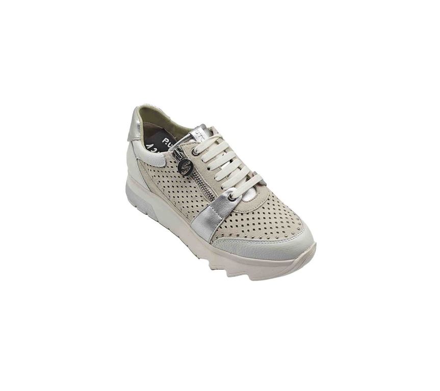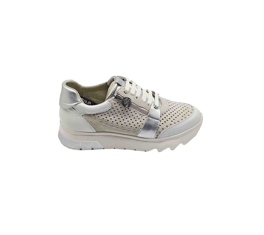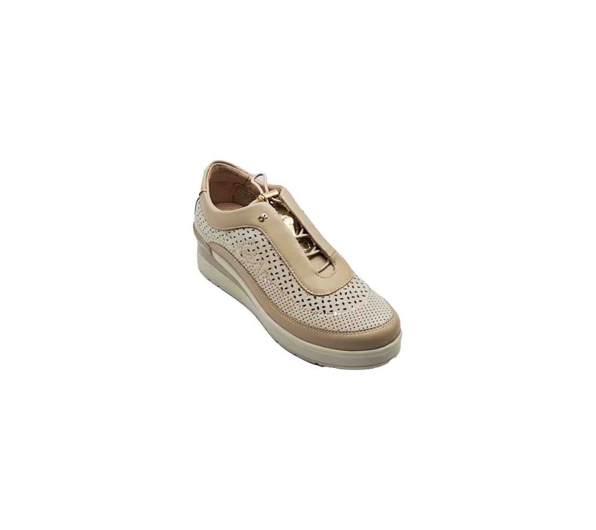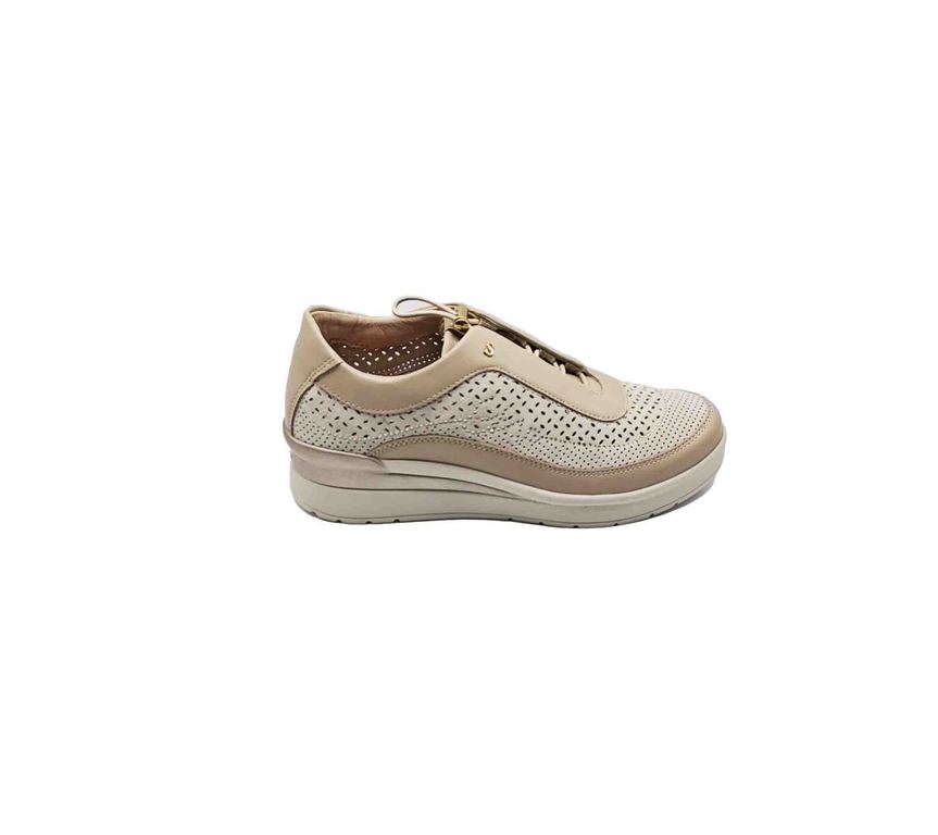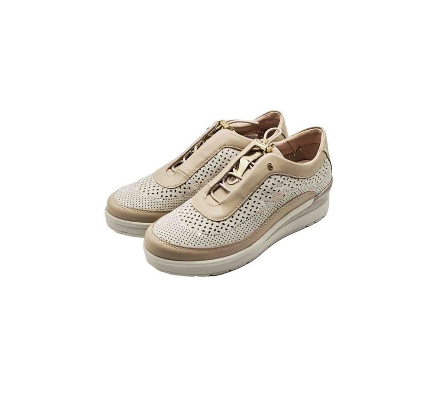 Zapatillas StoneFly de piel en tono beige con diseño perforado que ofrece máxima transpirabilidad y confort diario. Incorporan cordones elásticos con acabados dorados