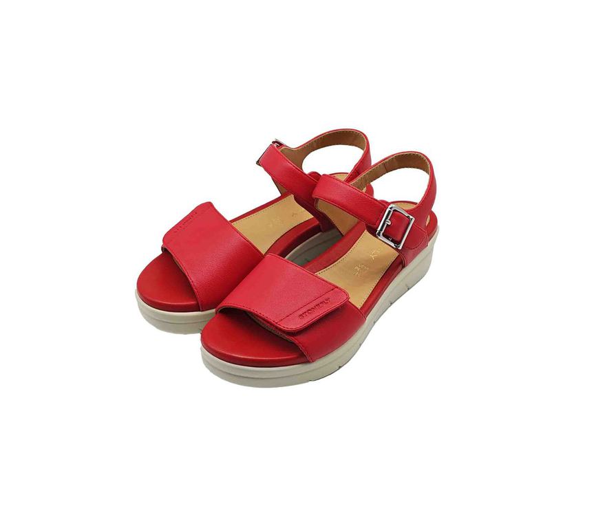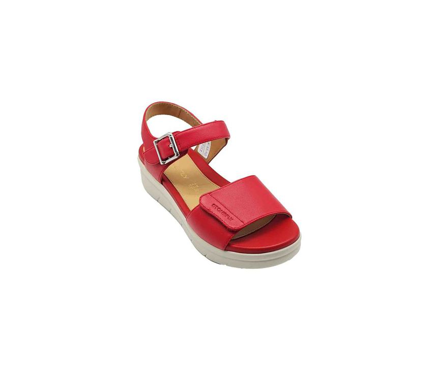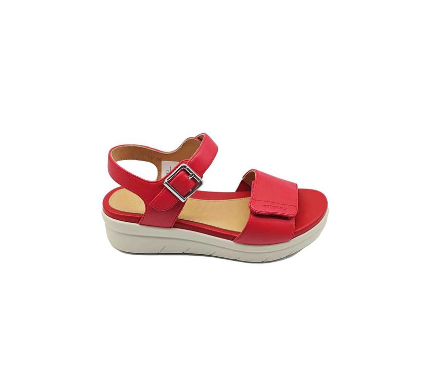 Descubre las sandalias StoneFly en rojo vibrante y apasionado, con plataforma ergonómica de 6 cm y tiras ajustables con hebilla para un ajuste impecable.