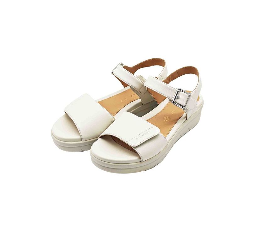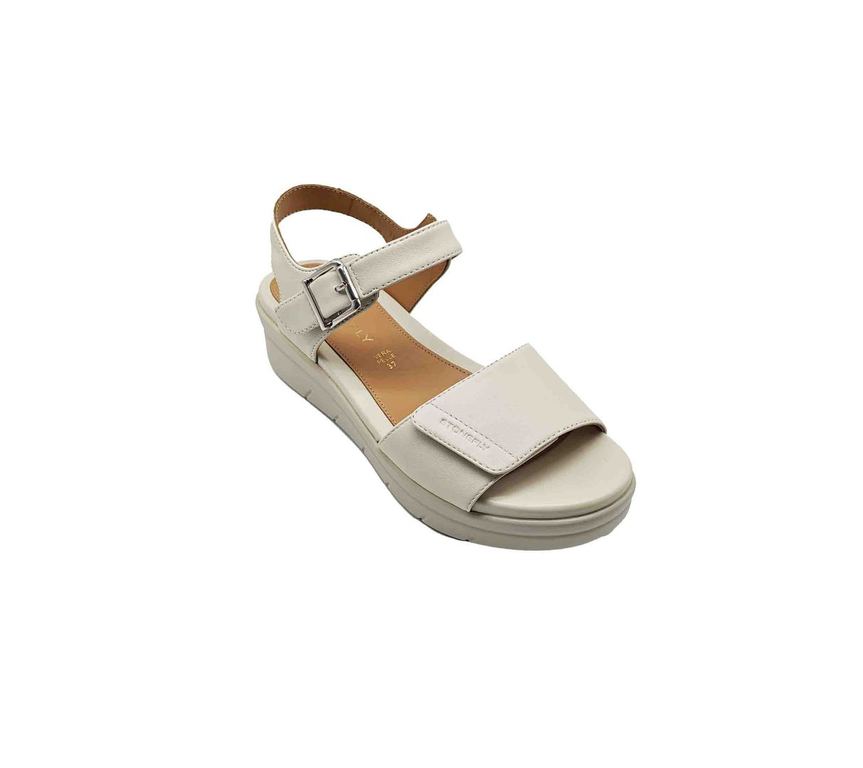 Descubre las sandalias StoneFly en blanco puro y elegante, con plataforma cómoda de 6 cm y tiras ajustables con hebilla para un soporte ideal.